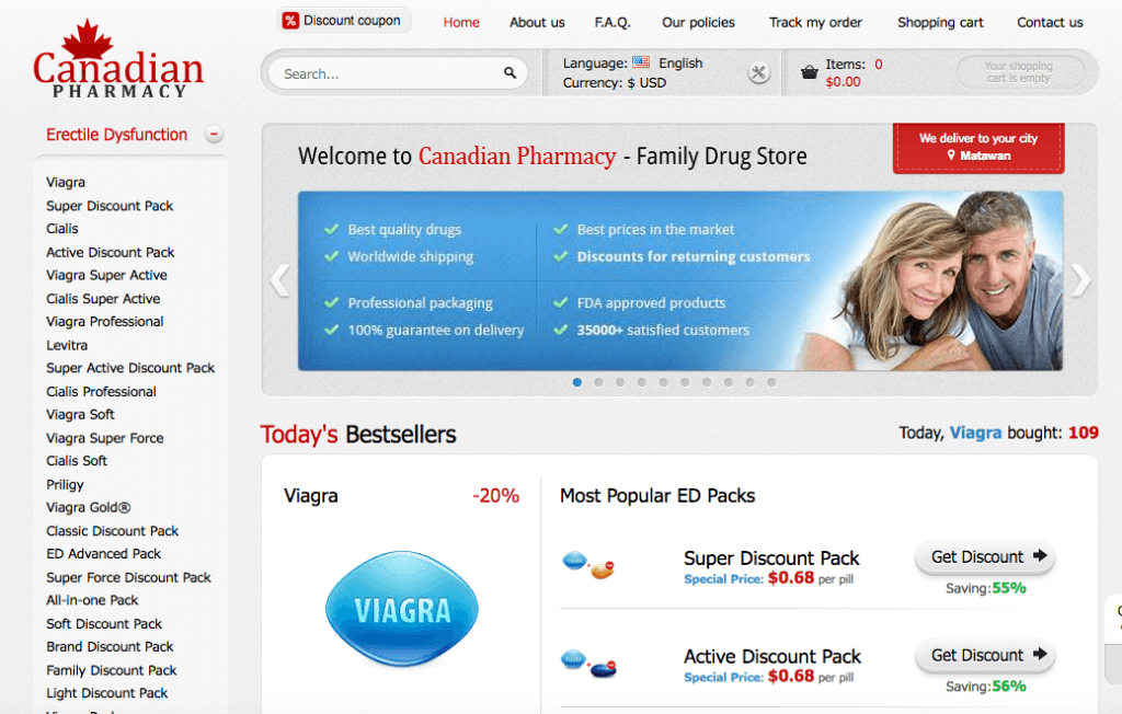 Drugs of all sorts are available on the website, and buyers can purchase any medicine of their choosing from Canadian Pharma, as drugs not only for erectile dysfunction are available. Canadian Pharma offers its clients products for various medical considerations, and it is to the clients’ advantage that the pricing from the store is cheap enough for buyers to be able to afford. The drugs are sorted per clinical condition, so buyers will have the ease of browsing the products online. Apart from ED pills, there are also drugs for premature ejaculation, contraceptives, diabetic maintenance medications, allergy meds, depression treatment, weight loss products, blood pressure medicine, and the list goes on. Although there are a lot of pharmaceutical goods accessible on Canadian Pharma, buyers mostly browse the website for its products for impotence such as its generic Viagra products, since most of the ED products sold at local drugstores are palpably expensive.